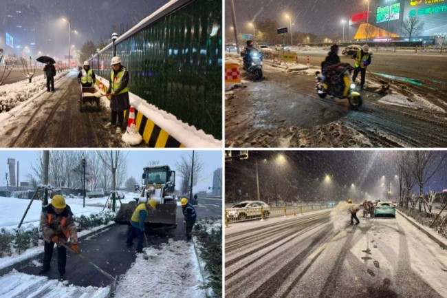 依托“城建益久”党建品牌引领,城建九公司马家庄南路项目部闻雪而动,快速响应。自12日下午降雪伊始,便第一时间启动应急处置,提前撒布融雪剂防冰。13日清晨再度全力投入积雪清扫,高效清除道路积雪,切实保障周边小区市民出行安全与道路畅通,用实际行动彰显党建引领下的国企担当。